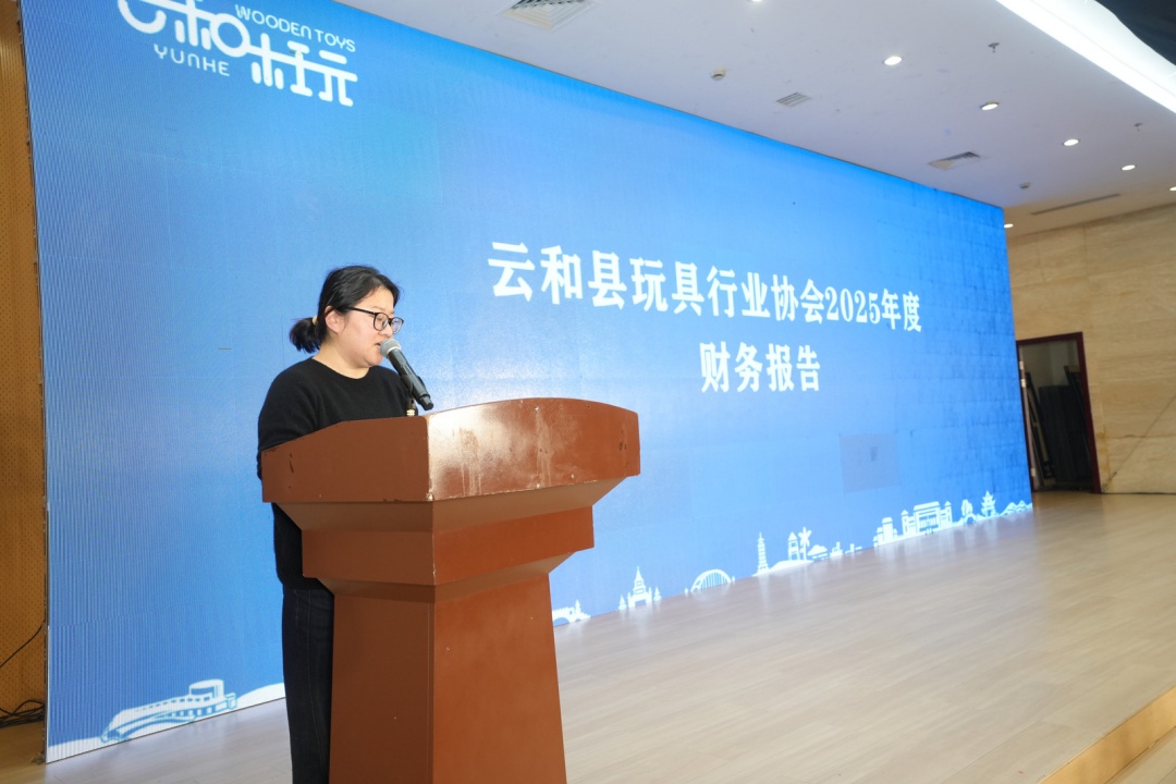 接着,大会审议并通过了云和县玩具协会会长王长荣作的《云和县玩具协会2025年度工作报告》和协会秘书长杨晓莹作的《云和县玩具协会2025年度财务报告》;