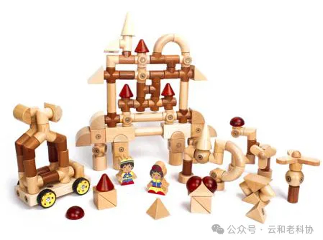 10.榫卯积木:以榫(凸出部分)和卯(凹进部分)的咬合实现连接,无需钉胶,侧重培养空间思维、手眼协调及传统文化认知,适合5岁以上儿童。
